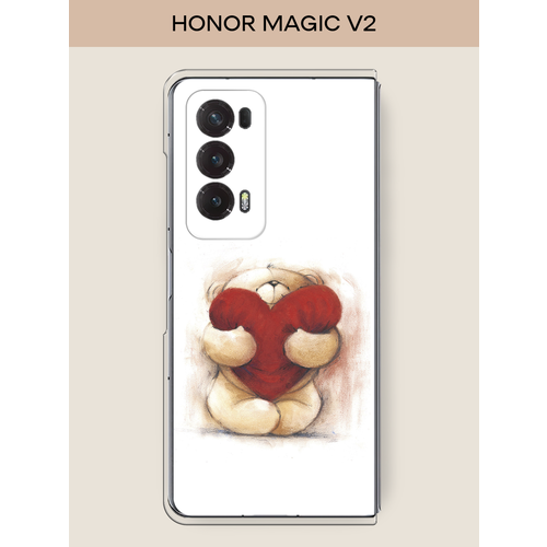 Чехол на Honor Magic V2 / Хонор Меджик V2 с принтом Мишка с сердцем 1