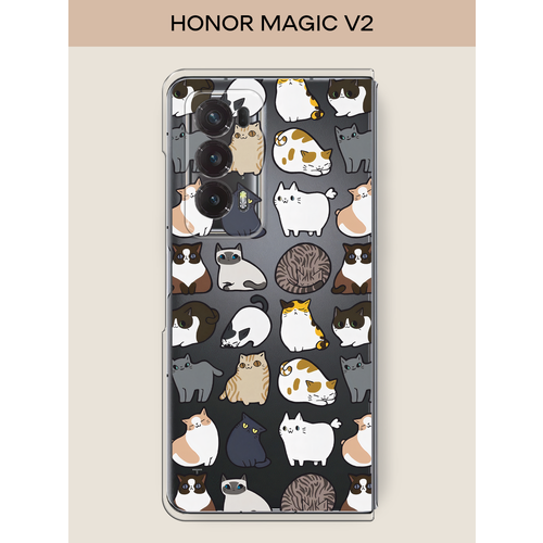 Чехол на Honor Magic V2 / Хонор Меджик V2 с принтом Милые котики, прозрачный