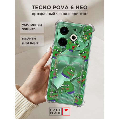 Чехол на Tecno Pova 6 Neo (Техно Пова 6 Нео) с картой и принтом Pepe frog heart pattern