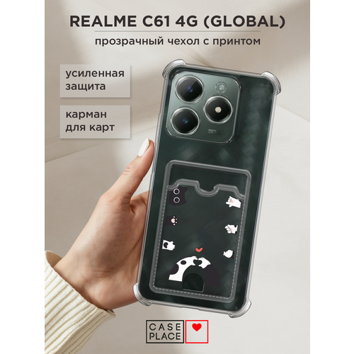 Чехол на Realme C61 4G (Global) (Реалми C61 4G) с картой и принтом Коты в чашке