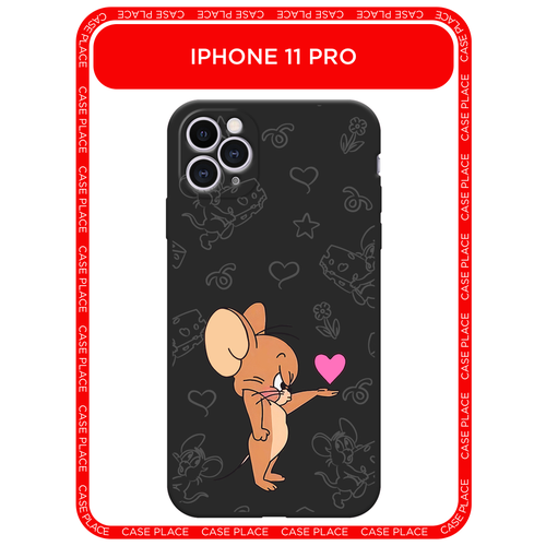 Черный матовый чехол на Apple iPhone 11 Pro / Айфон 11 Про с принтом Джерри и сердце 2