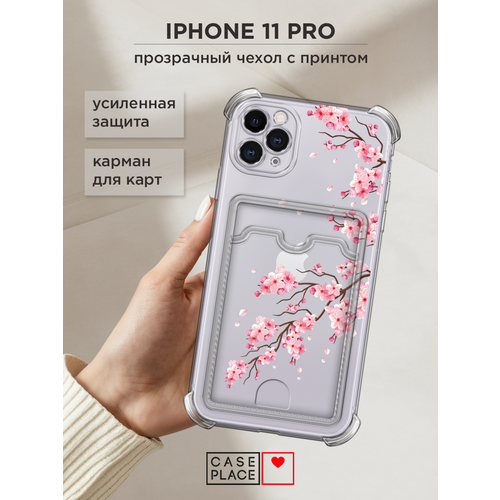 Чехол на Apple iPhone 11 Pro (Айфон 11 Про) с картой и принтом "Розовая ветка сакуры"