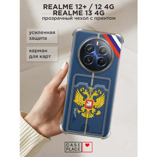 Чехол на Realme 12+/12 4G/13 4G (Реалми 12 Плюс/12 4G/13 4G) с картой и принтом "С гербом России"