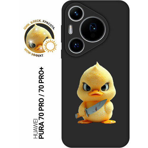 Силиконовый чехол на Huawei Pura 70 Pro / 70 Pro+ с принтом "Утенок и нож" матовый черный