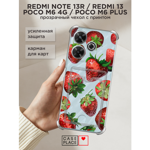 Чехол на Xiaomi Redmi Note 13R/Redmi 13/Poco M6 4G/M6 Plus (Сяоми Редми Ноут 13R/Редми 13/Поко М6 4G/M6 Плюс) с картой и принтом Сочная клубника 4