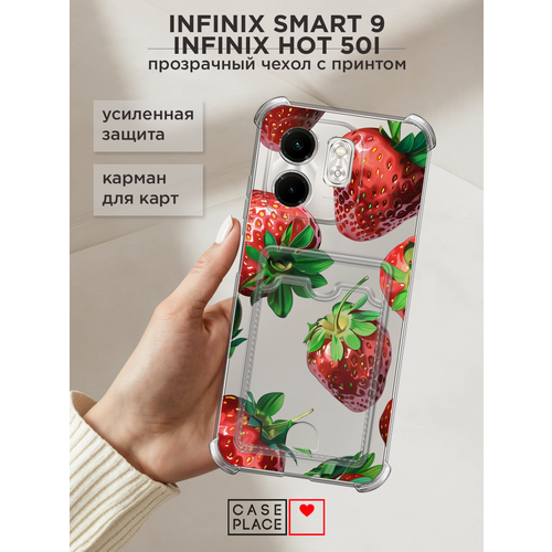 Чехол на Infinix Smart 9/Hot 50i (Инфиникс Смарт 9/Хот 50i) с картой и принтом Сочная клубника 3