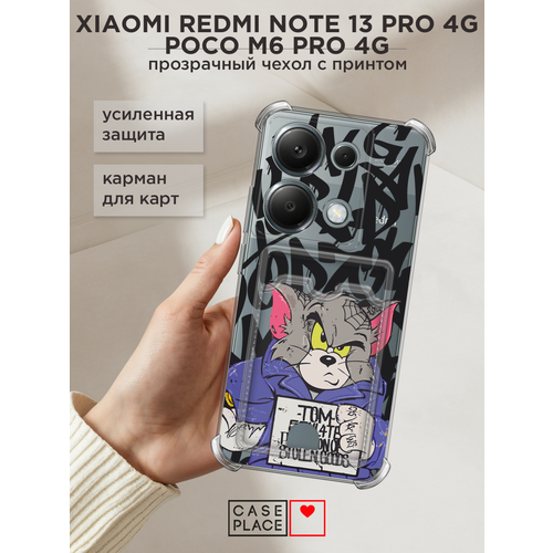 Чехол на Xiaomi Redmi Note 13 Pro 4G/POCO M6 Pro 4G (Сяоми Редми Нот 13 Про 4G/Поко М6 Про 4G) с картой и принтом Том и Джерри