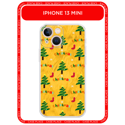 Чехол на Apple iPhone 13 mini / Айфон 13 мини с принтом Ёлочки на жёлтом паттерн