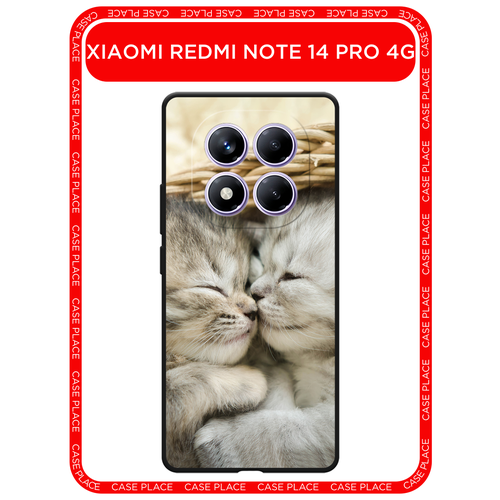 Черный матовый чехол на Xiaomi Redmi Note 14 Pro 4G / Сяоми Редми Нот 14 Про 4G с принтом Милые котята