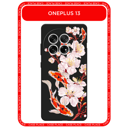Черный матовый чехол на OnePlus 13 / Ван Плас 13 с принтом Карпы и сакура