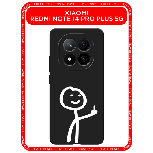 Черный матовый чехол на Xiaomi Redmi Note 14 Pro+ 5G / Сяоми Редми Нот 14 Про+ 5G с принтом Неприличный человечек белый