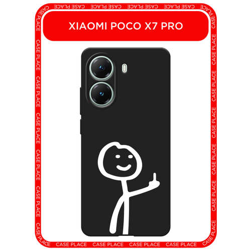 Черный матовый чехол на Poco X7 Pro / Поко X7 Про с принтом Неприличный человечек белый