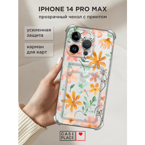 Чехол на Apple iPhone 14 Pro Max (Айфон 14 Про Макс) с картой и принтом Цветочки и стебли