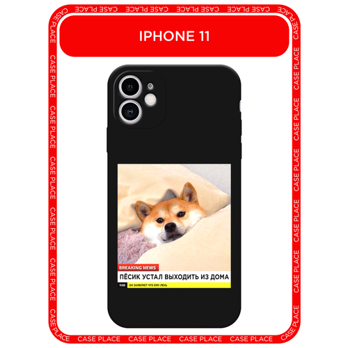 Черный матовый чехол на Apple iPhone 11 / Айфон 11 с принтом Уставший песик