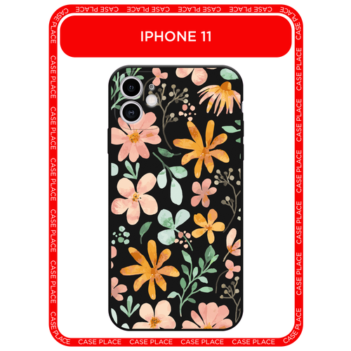 Черный матовый чехол на Apple iPhone 11 / Айфон 11 с принтом Цветочки и стебли