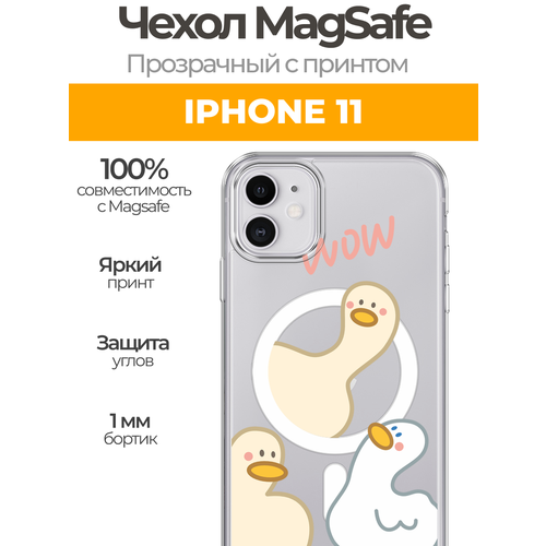 Чехол на Айфон 11 (Apple iPhone 11) MagSafe с магнитом и принтом "Утки wow"