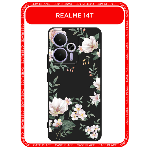 Черный матовый чехол на Realme 14T / Реалми 14Т с принтом Beautiful white flowers