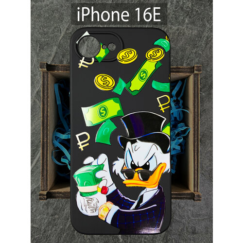 Силиконовый защитный чехол на iPhone 16e с принтом Макдак кидает бабки Айфон 16е