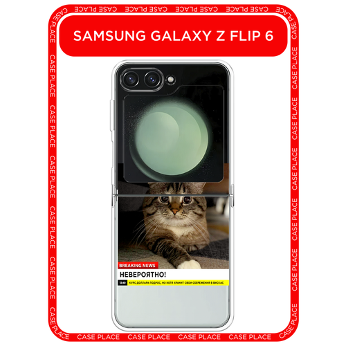 Чехол на Samsung Galaxy Z Flip 6/7 FE / Самсунг Z Flip 6/7 Фе с принтом Невероятный кот, прозрачный