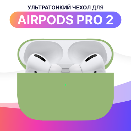 Силиконовый тонкий чехол для Apple AirPods Pro 2 / Защитный противоударный кейс для беспроводных наушников Эпл Аирподс Про 2 из гибкого силикона (Зеленая матча)