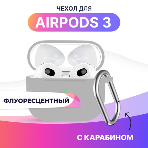 Ультратонкий чехол для Apple AirPods 3 / Силиконовый кейс с карабином для беспроводных наушников Эпл Аирподс 3 из гибкого силикона (Светящийся в темноте)