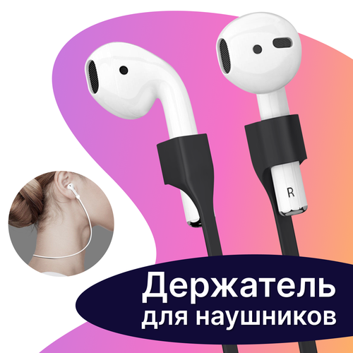Силиконовый шнурок для AirPods / Магнитный держатель для спорта / Черный