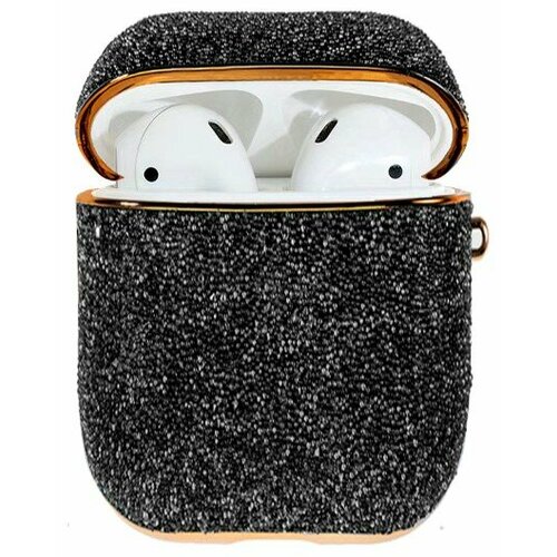 Чехол пластиковый Kingxbar со шнурком для Airpods 2, черные стразы (39)