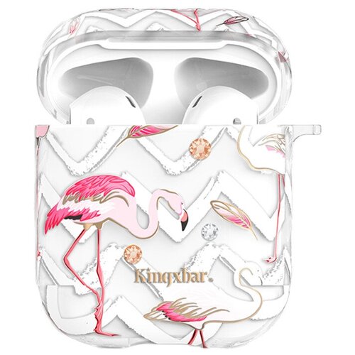 Чехол пластиковый Kingxbar для Airpods 2 (10), прозрачный, фламинго5, со шнурком