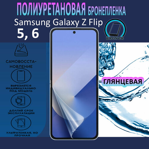 Полиуретановая бронепленка для Samsung Galaxy Z flip 5, 6 / Защитная плёнка на экран, совместима с чехлом, с вырезом под камеру / Глянцевая
