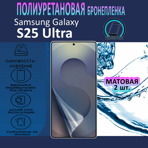 Полиуретановая бронепленка для Samsung Galaxy S25 Ultra / 2 штуки / Защитная плёнка на экран, совместима с чехлом, с вырезом под камеру / Матовая