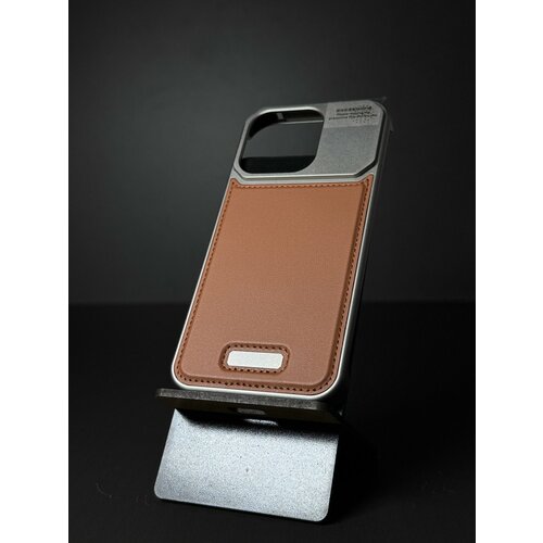 Чехол Айфон 16 Про / чехол iPhone 16 Pro Kevlar Metal Case, Алюминиевый, Золотистый, Коричневая кожаная вставка