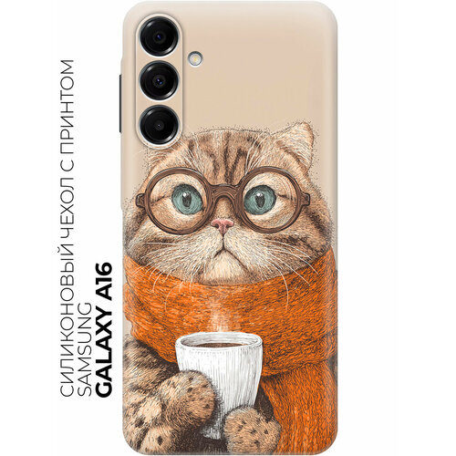 Силиконовый чехол на Samsung Galaxy A16 с принтом "Уютный момент с книжным котом"