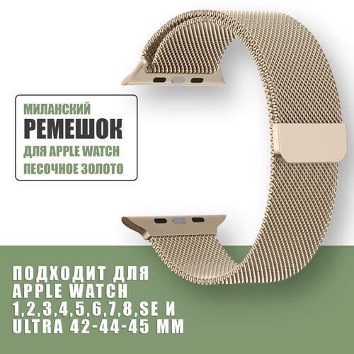 Миланский ремешок для Apple Watch 42мм 44мм 45мм 49мм 1, 2, 3, 4, 5, 6, 7, 8, SE и ULTRA, Миланская петля для Эпл вотч, Песочное золото