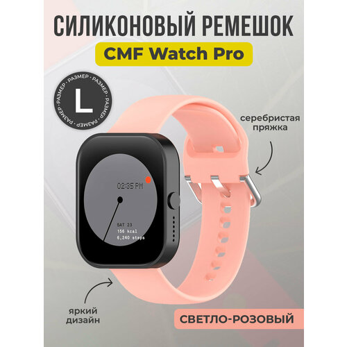 Силиконовый ремешок для CMF Watch Pro, серебристая пряжка, размер L, светло-розовый
