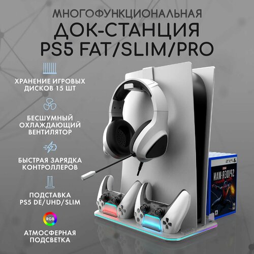 Зарядная док станция для Sony Playstation 5 Slim/pro белая c охлаждением