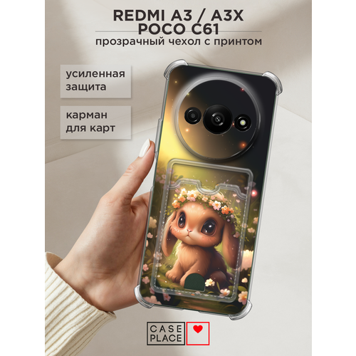 Чехол на Xiaomi Redmi A3/A3x/Poco C61 (Сяоми Редми А3/A3x/Поко С61) с картой и принтом Пасхальный кролик