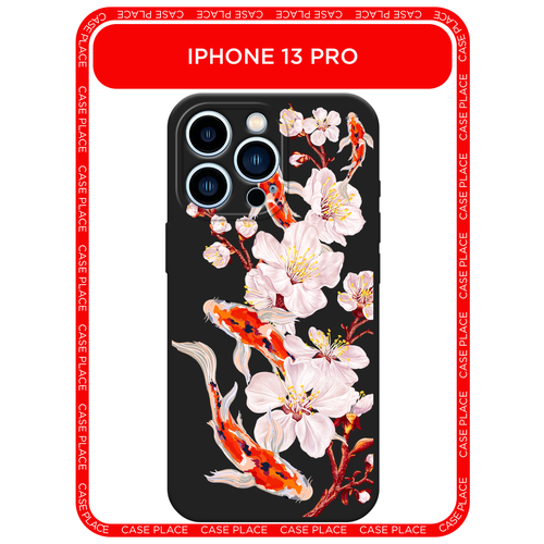 Черный матовый чехол на Apple iPhone 13 Pro / Айфон 13 Про с принтом Карпы и сакура