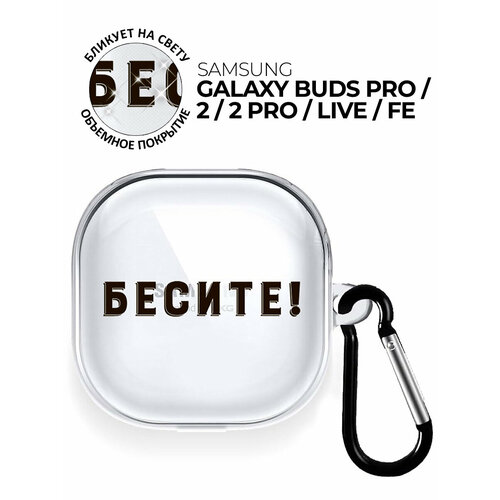 Чехол на Samsung Galaxy Buds Pro / 2 / 2 Pro / Live / FE с принтом "Бесите" прозрачный