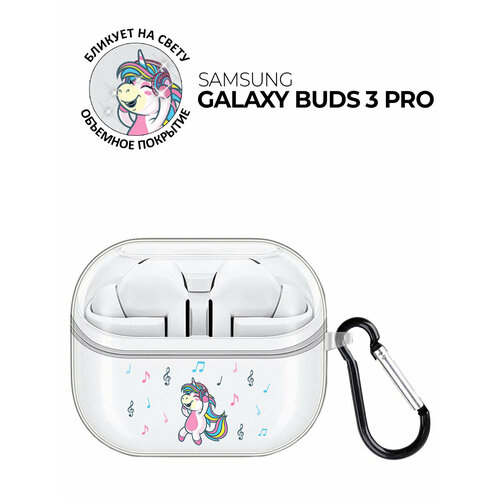 Чехол на Samsung Galaxy Buds Pro / 2 / 2 Pro / Live / FE с принтом "Единорог и конфеты" прозрачный