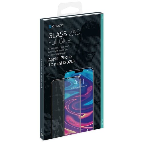 Защитное стекло 2,5D Full Glue для Apple iPhone 12 mini (2020), 0.3 мм, черная рамка, Deppa (62700)