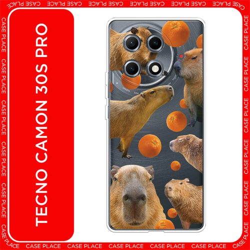 Чехол на Tecno Camon 30S Pro / Текно Камон 30S Про с принтом Капибара и апельсины, прозрачный