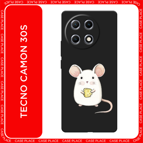 Черный матовый чехол на Tecno Camon 30S / Текно Камон 30S с принтом Мышка