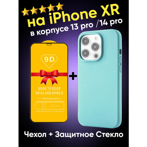 Чехол + защитное стекло на iPhone XR в корпусе 13-14 про / Бирюзовый Чехол