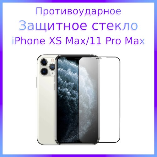 Стекло защитное противоударное закаленное для iPhone XS Max / 11 Pro Max Черная рамка