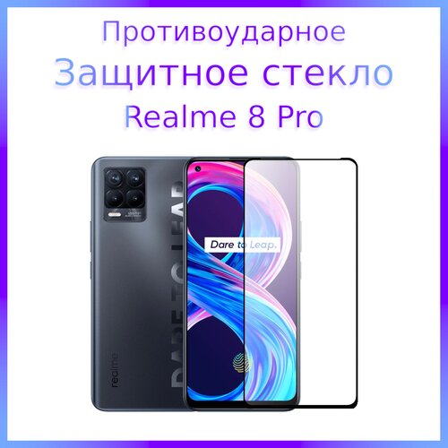 Стекло защитное противоударное закаленное для Realme 8 Pro Черная рамка