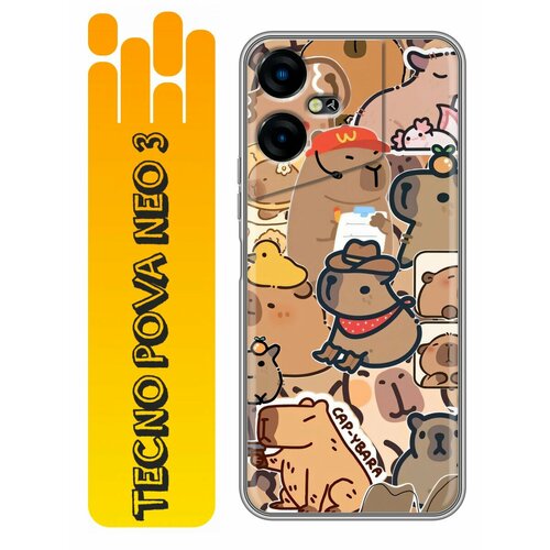 Чехол для Tecno Pova Neo 3 с принтом Смешные капибары (Техно Пова Нео 3)