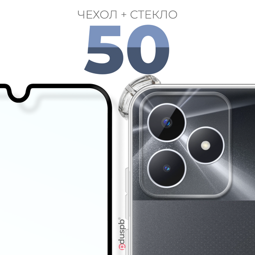 Комплект 2 в 1: чехол + стекло для Realme Note 50 ( Реалми Ноут 50) прозрачный противоударный с защитой камеры
