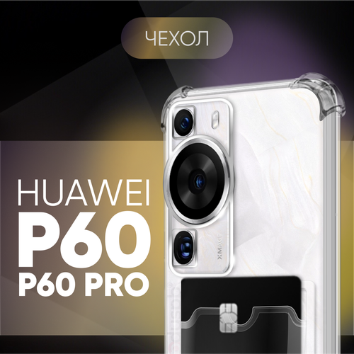 Прозрачный чехол для Huawei P60 / P60 Pro / силиконовый с карманом для карт и противоударными углами на Хуавей П60 / Про