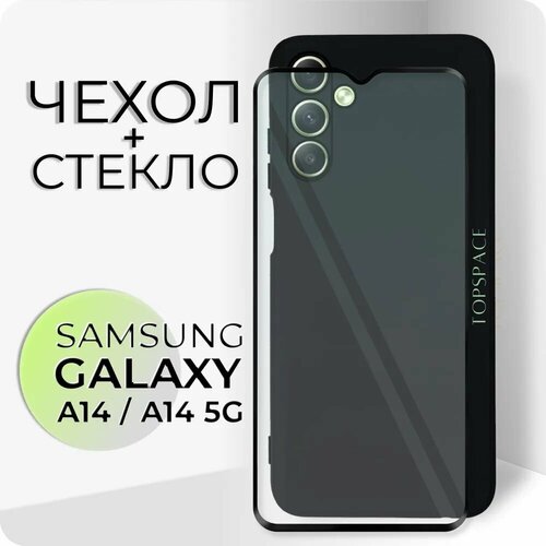 Комплект 2 в 1: Чехол №80 + стекло для Samsung Galaxy A14 / A14 5G / Черный матовый бампер с защитой камеры для Самсунг Галакси А14 / Гелекси А14 5Г