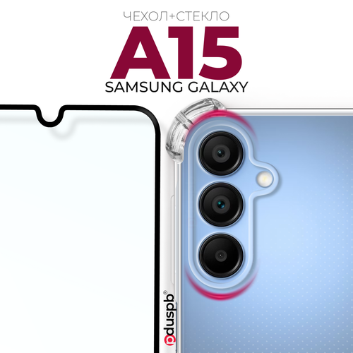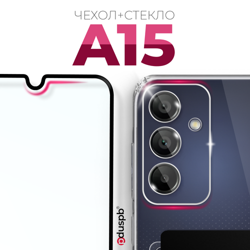 Комплект 2 в 1: Чехол + стекло для Samsung Galaxy A15 силиконовый прозрачный с защитой камеры на Самсунг Гэлакси А15